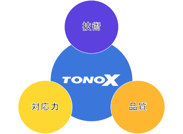 高い品質を維持するため、トノックスには、各専門を担当するスペシャリストが多数在籍しています。各部門での技術品質の高さはもちろん、これまで培ってきた経験を最大限活用し、最高のパフォーマンスを提供します。